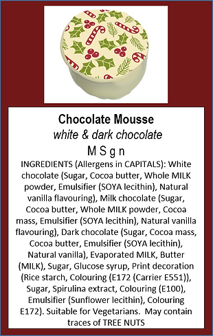 Continental chocolate menu with full allergen and ingredient information. If you require any further assistance please email or call the shop.